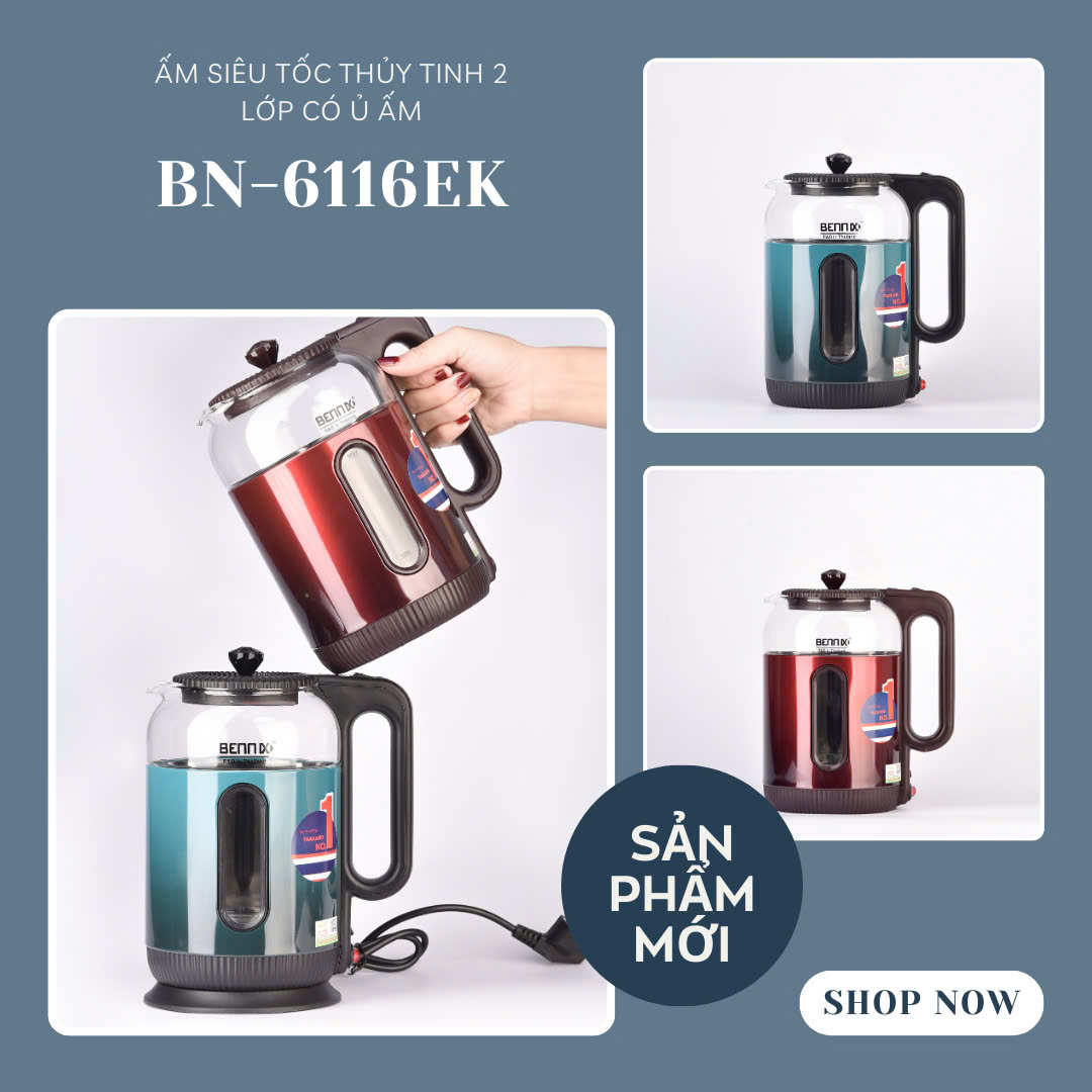 🍀 Ấm Siêu Tốc Bennix BN-6116EK – Sản phẩm tiện lợi cho mọi gia đình