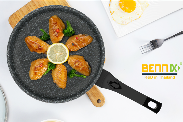Chảo đá từ siêu bền BENNIX được thị trường tin dùng bởi tính bền chắc, chống dính ưu việt và thiết kế sang trọng. Với việc phủ một lớp đá Marble lên trên bề mặt giúp cho hình thức sản phẩm nổi bật, nhã nhặn rất phù hợp với gian bếp mọi nhà. Ngoài ra, trang bị một đáy bắt từ tốt, chảo có thể sử dụng cho mọi loại bếp.