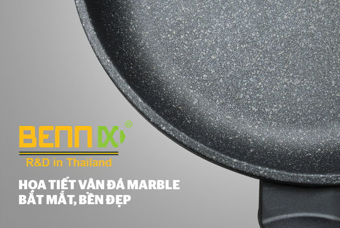 - Cấu tạo: Toàn bộ chảo được phủ một lớp đá Marble chắc chắn, tạo hiệu ứng 3D sang trọng và chắc chắn.