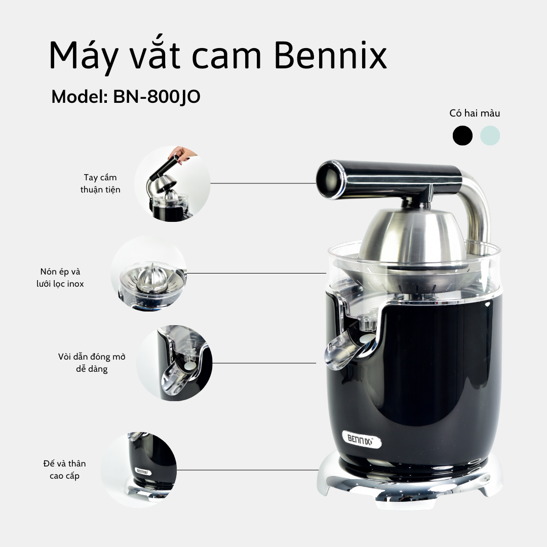 Máy vắt cam Bennix BN-800JO không chỉ là một thiết bị gia dụng mà còn là một trợ thủ đắc lực trong gian bếp của bạn. Hãy trải nghiệm sự tiện lợi và hiệu quả mà sản phẩm mang lại, và tận hưởng những ly nước ép tươi ngon mỗi ngày!