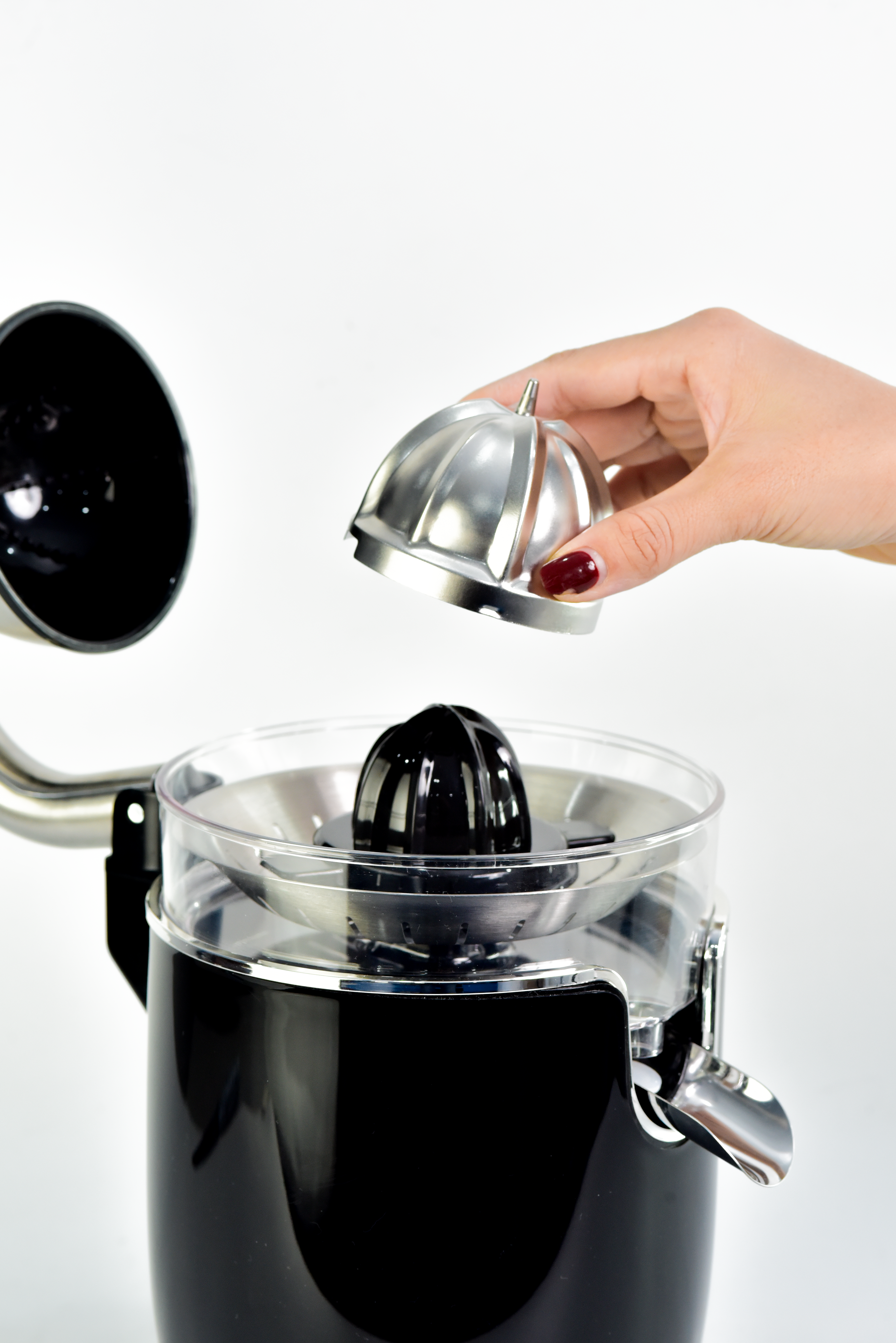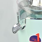 Máy được trang bị tay cầm chắc chắn, giúp bạn dễ dàng ép cam mà không cần dùng quá nhiều lực. Bên cạnh đó, vòi rót bằng inox với cơ chế đóng mở linh hoạt giúp việc rót nước ép trở nên thuận tiện và không gây đổ tràn.