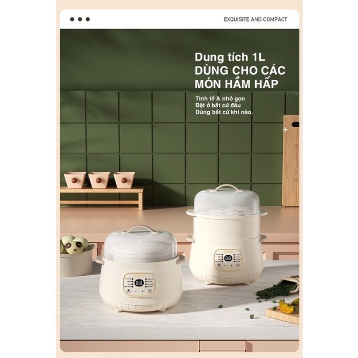 – Dung ích 1L dùng cho các món hầm hấp, tinh tế và nhỏ gọn, đặt ở bất cứ đâu, dùng bất cứ khi nào