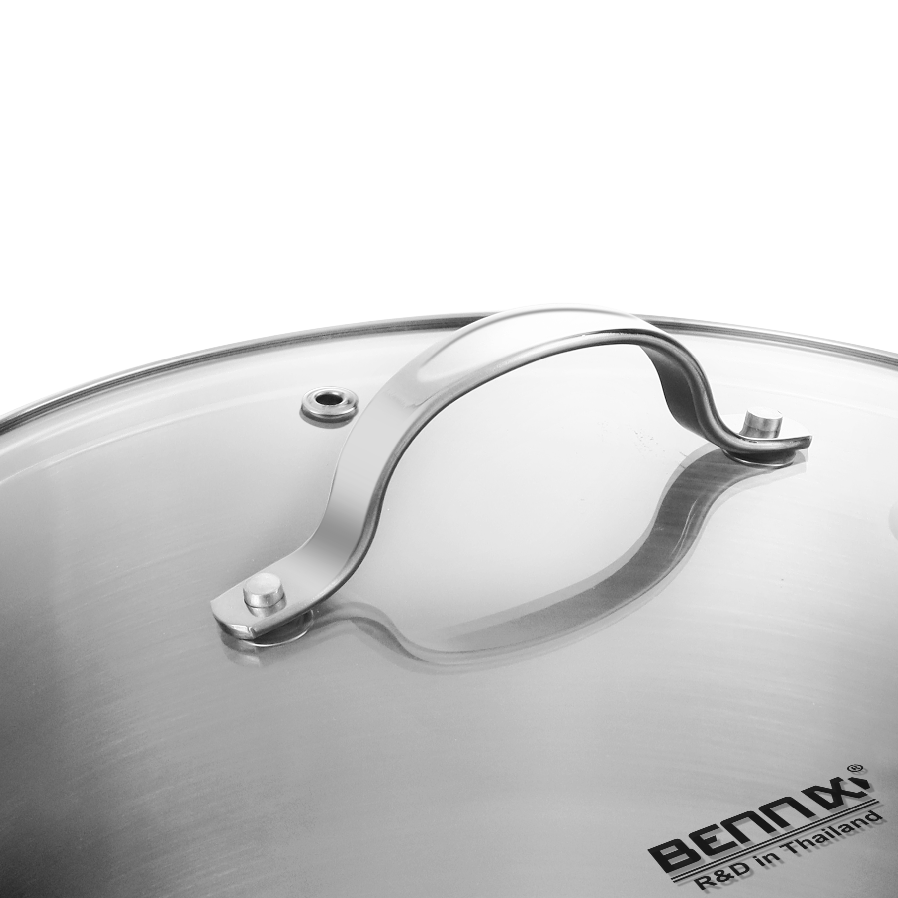 Vung kính thông minh: Nắp kính cường lực dày 0.4mm chịu nhiệt, thiết kế kiểu chữ G bo viền inox sang trọng, dễ dàng quan sát thực phẩm.