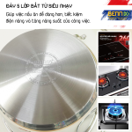 Đáy từ 5 lớp: Cấu tạo đáy dày dặn giúp bắt từ cực tốt, tỏa nhiệt đều, chống cháy khét cục bộ, tiết kiệm nhiên liệu.